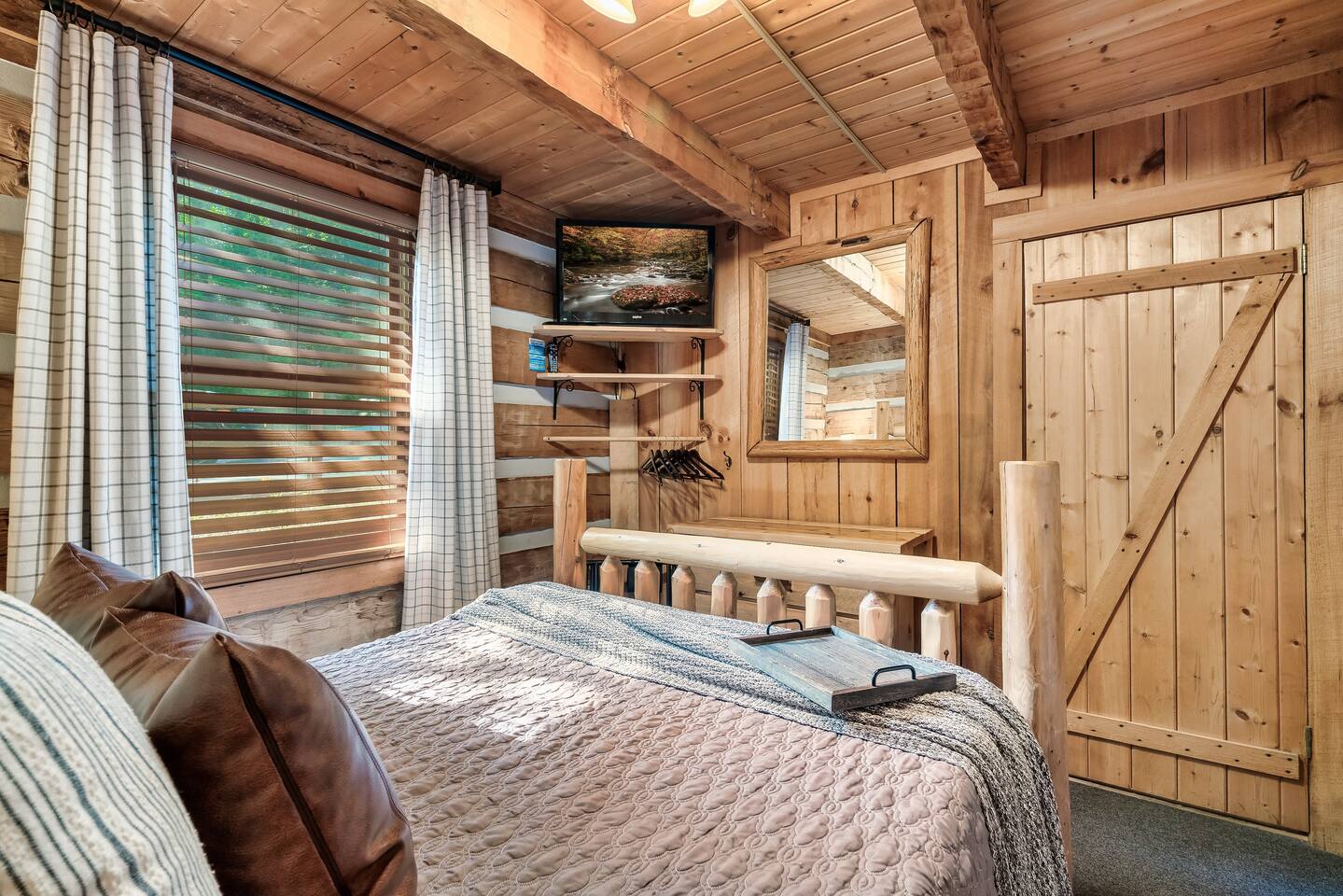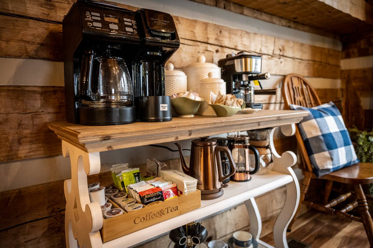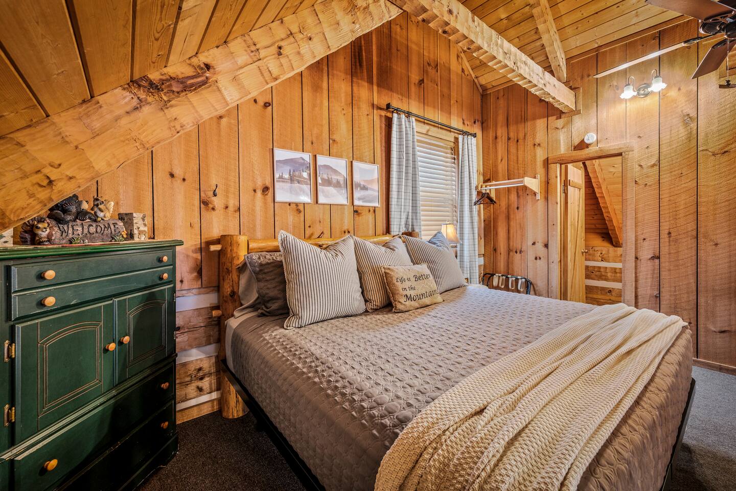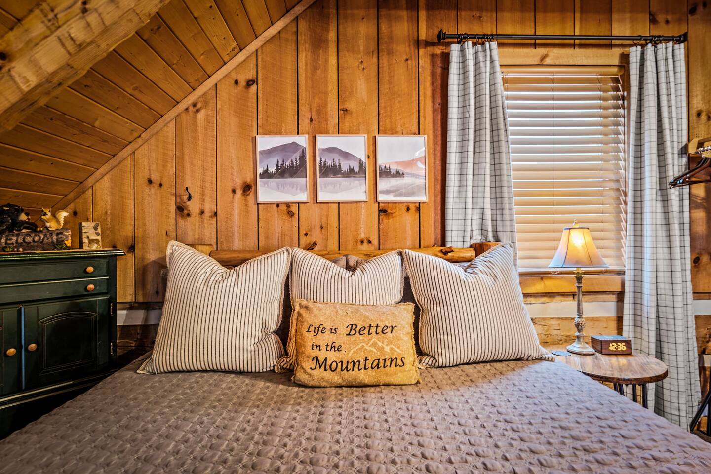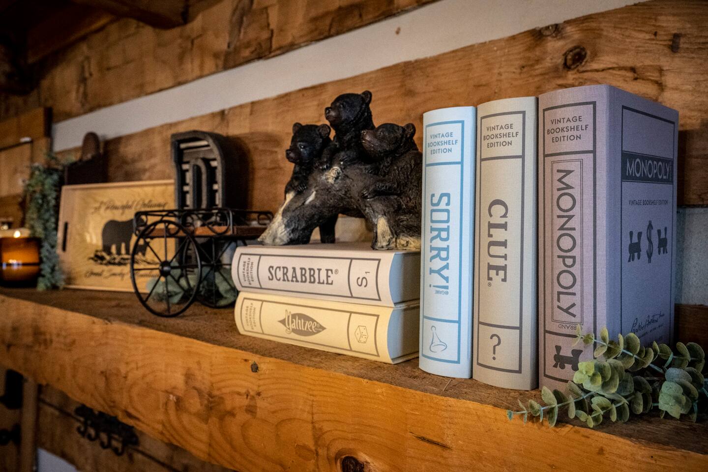 Our mountain side cabin offers many amenities including: • Hot tub on back porch overlooking downtown Pigeon Forge • Pool table in loft area • Fully stocked coffee bar for drip, pour over or pods, espresso machine, w/ coffee grounds, coffee beans, k-cups & individually packaged cream & sugar • Roku TVs w/ Hulu live & Disney+ stream access for movies & sports • Vintage board game classics: Scrabble, Monopoly, Clue, Sorry & Yahtzee, & chess/checkers set. • Gas log fireplace w/ timer switching