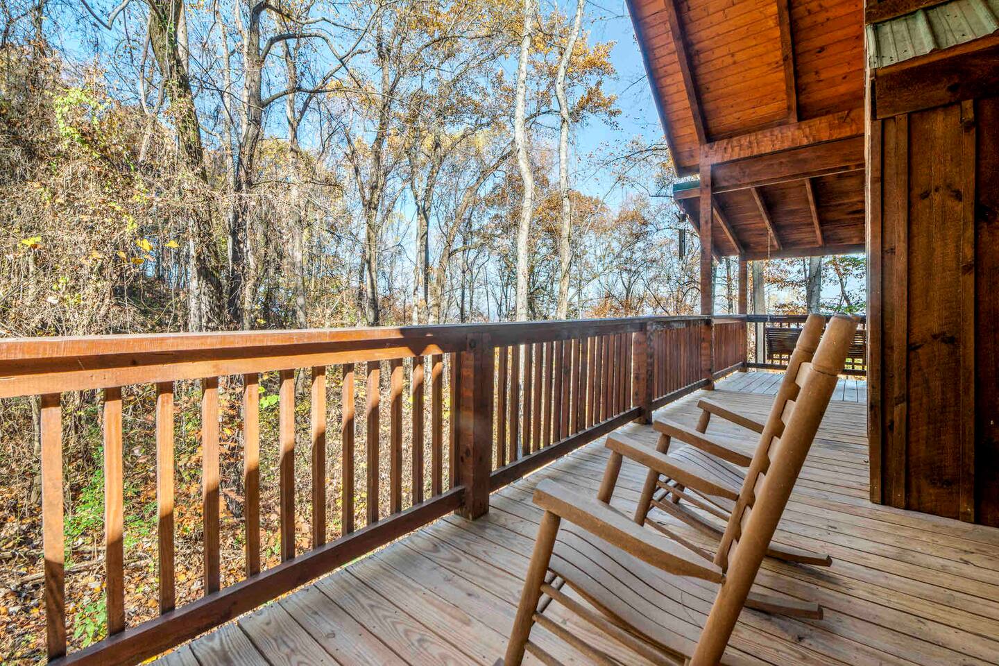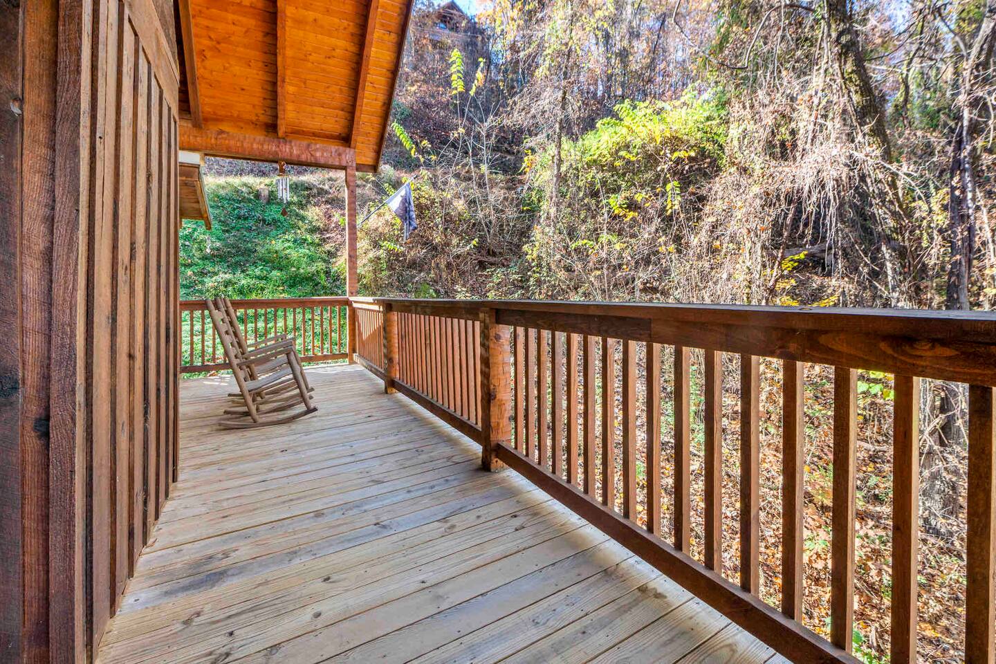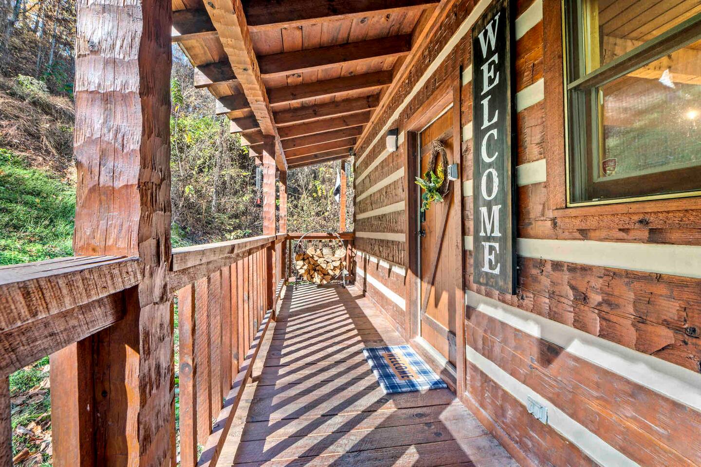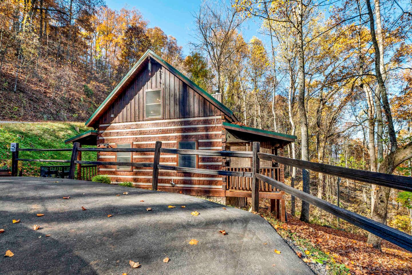 Secluded cabin located on a quiet mountain getaway with beautiful city views during late fall and winter, and vibrant foliage views during spring, summer and early fall. The Peaceful Getaway is located less than 3 miles from the main parkway in Pigeon Forge and is the perfect place to relax and enjoy the peacefulness of the Great Smoky Mountains. Experience true mountain living in this authentic hand-hewn log cabin in a mountainous location with rustic charm, while still being minutes away from gas stations, convenience stores, outdoor parks for children, grocery stores, and restaurants located just down the mountain from the cabin, as well as a short distance to all the local attractions.